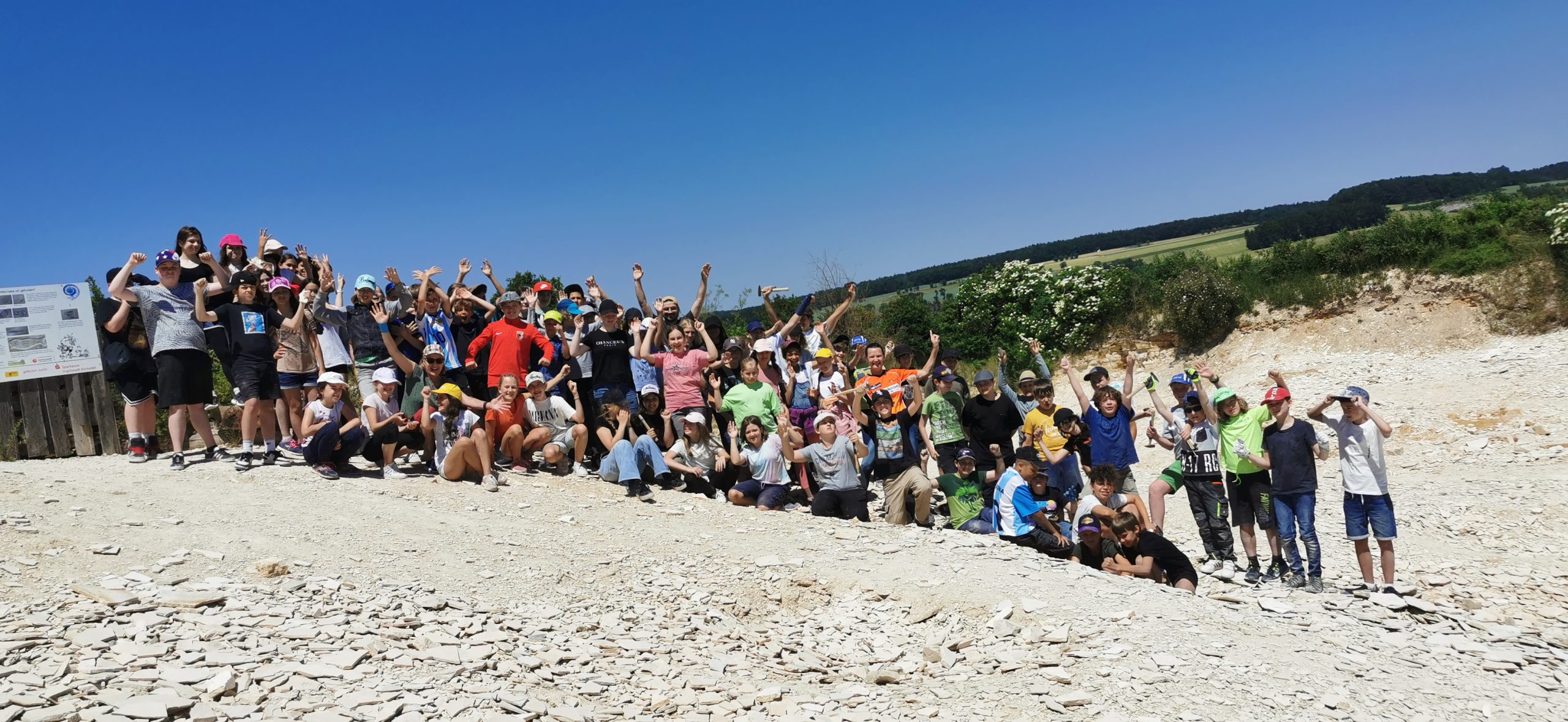 3 Klassen, 6ab und c sind gemeinsam unterwegs; im Steinbruch Mühlheim zerstreut sich die Gesellschaft und jeder hat zu tun. Die Gesichter tauchen nur auf, wenn etwas gefunden wurde und natürlich am Ende zum Gruppenbild.